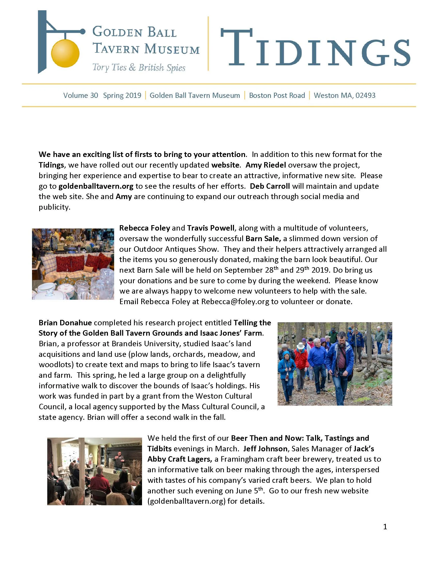 Golden Ball Tavern Museum February 26, 2019 Tidings - 2017 Golden Ball Tavern Museum February 26, 2019